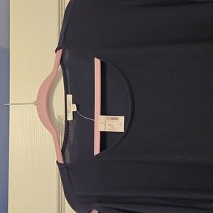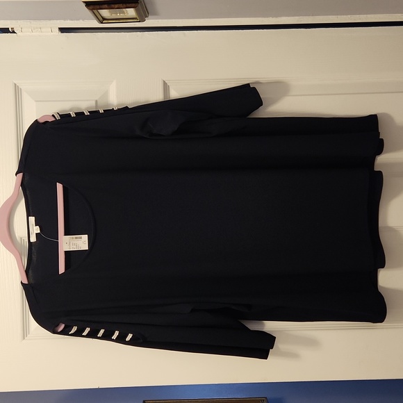 89th + Madison navy blue knit dressy top, 3/4 sleeves, diamond cut-out embellished sleeves, round neck, plain back, polyester/spandex, size 2 XL, brand new with tags, never worn.