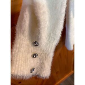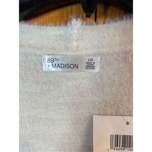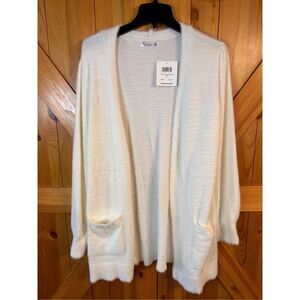 NWT 89th Madison long form cardigan size large ivory long sleeve pockets fuzzy soft has snags on the inside you care kinda see one on the back below the neckline and one on sleeve see pictures pit to pit 21” length 34” (4755)