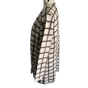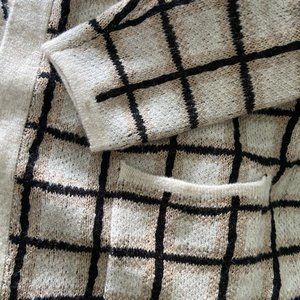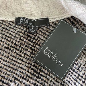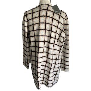 89th and Madison Women's Beige Window Pane Cardigan Sz Large Open Front Sweater
