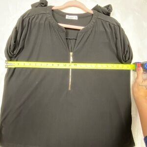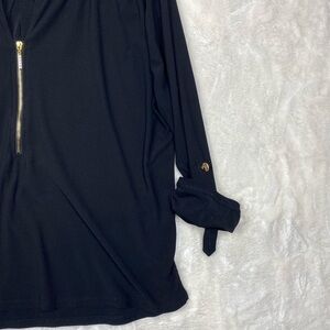 89th and Madison black and gold long sleeve blouse. three quarter if rolled up and buttoned