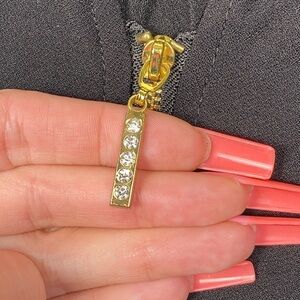 V neck with embedded gems in gold zipper
