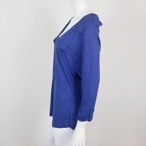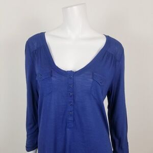 89th & Madison Blue Scoop Neck Henley Top Medium