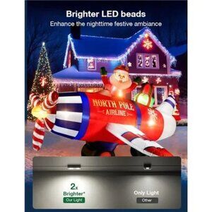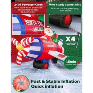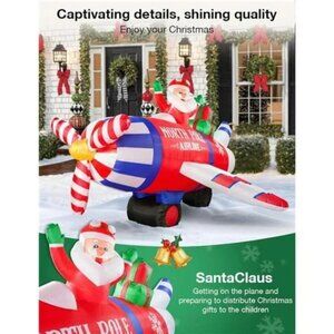 【Enhanced Lighting for Festive Evenings】Outfitted with larger, brighter LED lamp beads, this inflatable Santa airplane casts a dazzling glow, illuminating the night with a warm and inviting Christmas spirit. Kids and adults alike will marvel at the whimsical scene of Santa delivering presents by air.