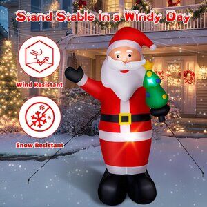 Effortless Installation: Setting up your inflatable Santa Claus is a breeze. He inflates in minutes, saving you time and effort during the busy holiday season. Plus, we've included 2 ropes and 4 ground stakes to ensure that Santa stands tall and proud, regardless of the weather conditions.