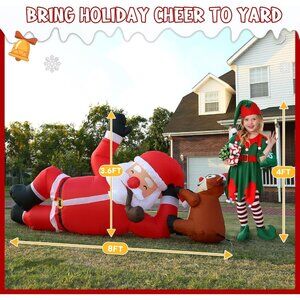 ⚡8FT Christmas Inflatable Lying Santa Reindeer Outdoor Roof Indoor Decoration