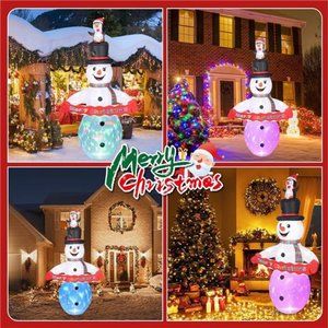 🧿【8FT Christmas Inflatable Snowman】A colorful snowman with a smile on his face, a penguin on his head, and a Merry Christmas banner in his hand. The snowman and the penguin seem to be celebrating Christmas together! The rotating LED colorful lights at the bottom make his night vision more beautiful! Whether indoors or outdoors, day or night, it always gives you a beautiful and unforgettable Christmas vacation!