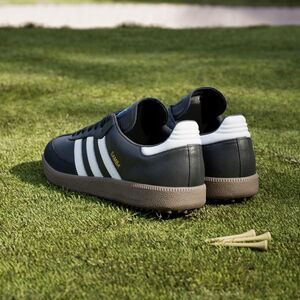 The new men's adidas Samba Spikeless Golf Shoes in black are a stylish and comfortable choice for casual wear or golfing.