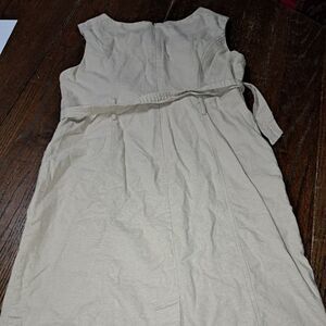Good Used Condition Women's Size 8P Ann Klein Sleeveless Rear Concealed Zipper Tan Khaki Belted Linen Midi Dress with Rear Slit and Pockets