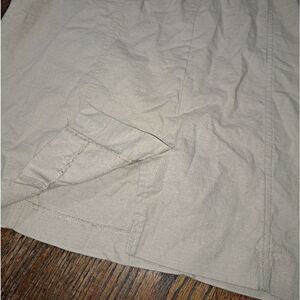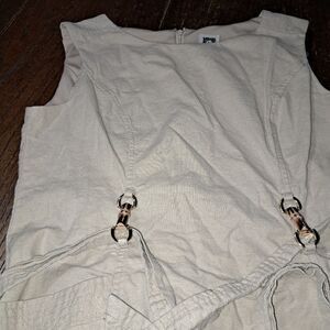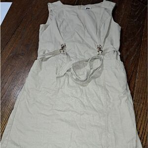 8P Ann Klein Sleeveless Tan Khaki Belted Midi Linen Dress with Buckle Detail