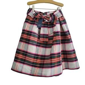 New with tags Crown & Ivy plaid, green, pink, navy midi skirt. Ribbon around waist for bow in front or back. Great for holiday parties. Lined. Size 8P.