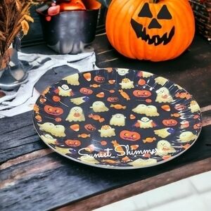 8PC Cupcakes & Cashmere Halloween GHOST Jack Pumpkin Melamine Dinner Plate SET