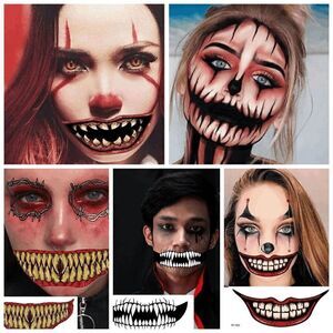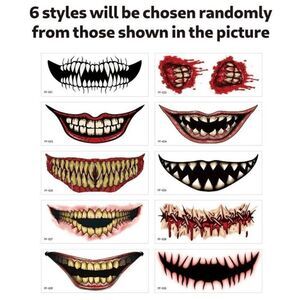 β€οΈ 6pcs of Waterproof Big Mouth Face Halloween Temporary Tattoo Stickers Set (6 styles will be chosen randomly from those shown in the picture)