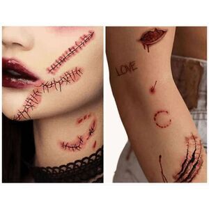 β€οΈ 4pcs of Waterproof Scar Wound Halloween Temporary Tattoo Stickers Set (4 styles will be chosen randomly from those shown in the picture)