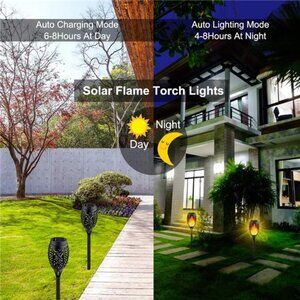 Torch Lights Flickering Flame: Solar outdoor lights flicker a soft and mod-enhancing "Real" flame for outdoor decorations for patio, garden, yard, porch, pool decor and for party, camping, barbecue, wedding, christmas, halloween decor.