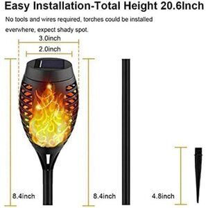 Easy Install & Outside Waterproof: Easy to install solar lights outdoor waterproof where under direct sunlight without tool and wire. With excellent ABS material and waterproof design, solar flame torch lights can withstand most weather conditions.