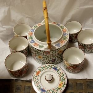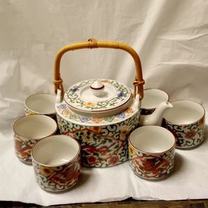 8-Pc OMC Japanese Tea Set Dragon Pattern Porcelian Ceramic