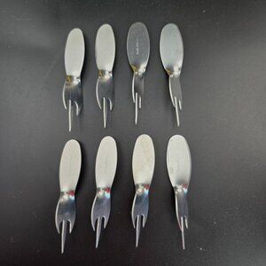 8-Pc Vintage 3" Stainless Steel Cocktail Appetizer 3 Prong Sporks Made In USA