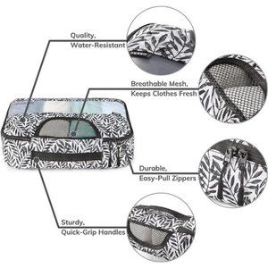 🧿[Innovative & Functional design] – Featuring packing cubes in different sizes (XL for coats, sweaters, and jeans, L for under shirts, dresses, and pants, M for shirts, skirts, shorts, and more, and S for undergarments, socks, or other small garments), with a clear mesh to keep clothes fresh, and a pre-printed label for you to be able to easily tell where everything is, these packing cubes for suitcases can fit in most common suitcases sized 20”, 24”, or 28”.