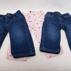 Carter’s coral jeans with all-over black dinosaur print – elastic waist, button front, and faux pockets