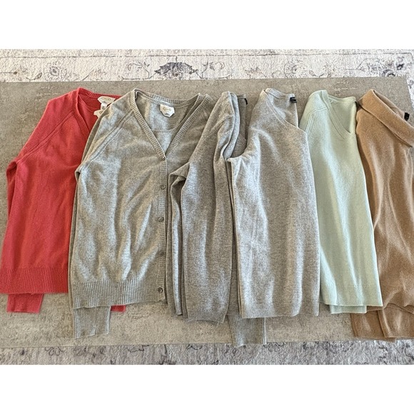 Bundle includes 8 pieces, gently worn in excellent condition, well taken care of, super soft cashmere sweaters. Tag says XL but they also fit relaxed Large. Two pieces are vintage Talbots. No flaw no damage, this bundle is great Christmas present to yourself or someone who appreciates quality.