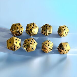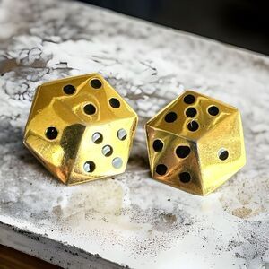 Lot of 4 vintage designer Escada buttons Pictorial dice shaped Gold and black. Approximately 3/4”. Excellent vintage condition some very slight wear to the high spots. This style of buttons was used on a black and white check fabric Chanel style jacket and other items in the 1980’s , would be fabulous with current styles, substantial buttons. Please see all photos for full description.