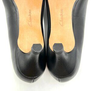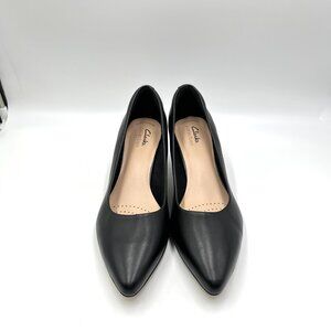 8W 8 WIDE WIDTH Clarks Womens Linvale Jerica Black Leather Pumps Heels Shoes