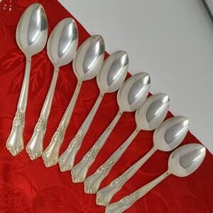 8X Tbsp Rogers Oneida “VALLEY ROSE”, 1956 Silver Plated Table Spoon Floral