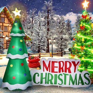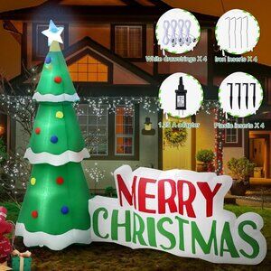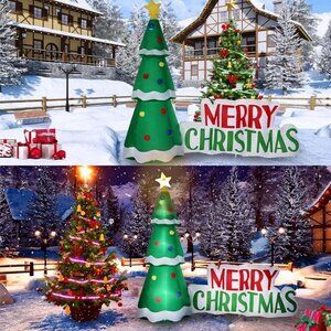 Fabulous Inflatable Decoration: A jumbo 8ft tall inflatable Christmas tree sign with a star on top. A street sign reads Merry Christmas. Bring joy and happiness to your children, kids also love to give them as Christmas gifts to family, friends or loved ones. Make your yard a warm welcome from your neighbors!