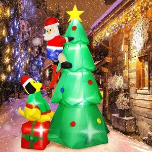 🆕8ft Christmas Inflatables Tree with Santa Claus Dog Outdoor Decorations