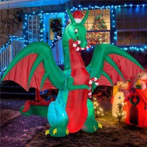🧿Greet guests and passersby with an BLOWOUT FUN Inflatable Christmas Dargon with Candy. This charming inflatable green dragon makes a delightful addition to your Christmas decorations.