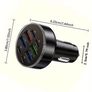The 8-in-1 Car Phone Charger with QC3.0 Fast Charging and PD+USB Dual Output Hub is a versatile and convenient accessory for your car. With its glossy black design and compact size, this universal charger is compatible with most devices and offers fast charging capabilities. It features 8 ports, including dual USB and USB-C connectivity, making it easy to charge multiple devices at once. The charger can be easily mounted on the dashboard or cigarette lighter, providing a convenient and hands-free charging solution for your on-the-go lifestyle.