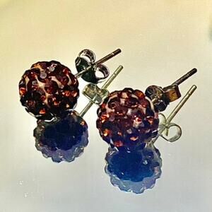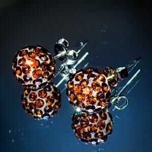 8mm Amber Brown Stud Shamballa Crystal Rhinestone Gem Czech Earring Classy