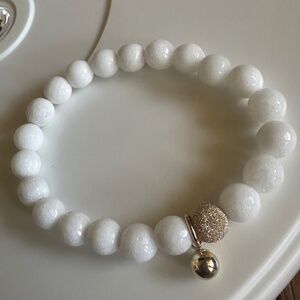 8mm Faceted White Jade Stretch Bracelet w/ 14k Gold Stardust Spacer & Ball Charm