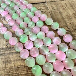 Natural Selenite Beads Strands, Grade A, Dyed, Round, Colorful