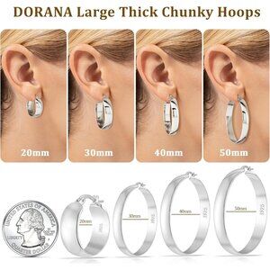 Sterling Silver Hoop Earrings:Large Hoop Earrings are made of sterlings silver,s925 hoop earrings. Which is hypoallergenic and nickel free, they won't hurt your sensitive ears and is very comfortable to wear. Chunky silver Hoop Earrings stay shiny for a long time ,no fade and rust,and keep you looking radiant with silver large hoops.