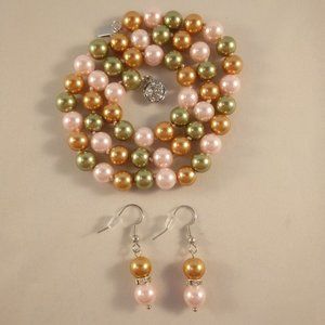 8mm Tri Color South Sea Shell Pearl Necklace + Earrings Set AAA+ Gorgeous Gift