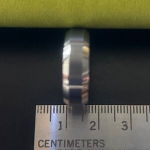 Brick pattern 8mm wide Tungsten band in US size 6-3/4, weighing in at 12.22 grams
