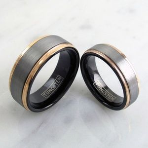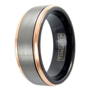 Absolutely Gorgeous 2 tone Tungsten ring. silver, and gold colored. 100% Tungsten metal - durable, never tarnishes or discolors your finger, and features domed comfort fit for zero irritation. Available in men's and women's sizes. 6mm width sizes 5-9 and 8mm width sizes 7-14 with all half sizes available!. Thanks for looking! 😄 great for wedding bands or everyday use