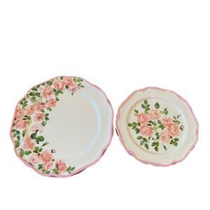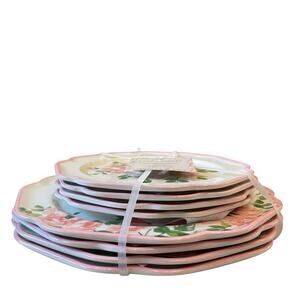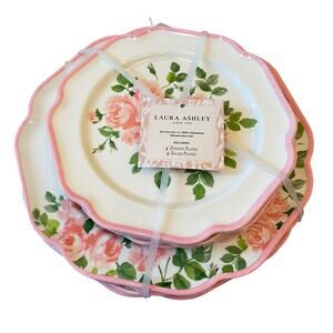 8pc Laura Ashley Pink Rose Floral Melamine Salad & Dinner Plate Set Spring NEW