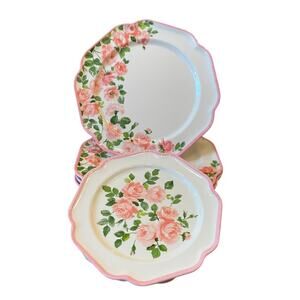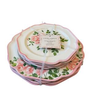 8pc Laura Ashley Pink Rose Floral Melamine Salad & Dinner Plate Set Spring