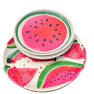 8pc Primrose Alley Watermelon Melamine Salad | Dinner Plate Set NEW
