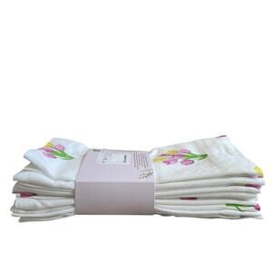 8pc Rachel Ashwell THE FARMHOUSE Cotton Napkins 18x18 Embroidered Tulips