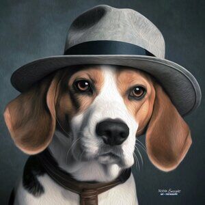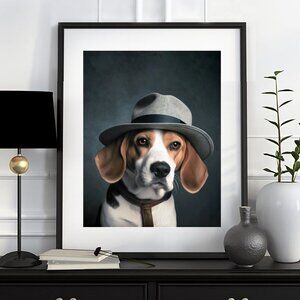 Beagle Detective Funny Dog Wearing Fedora Portrait Watercolor Oil Painting Wall Art Print - Beagle Dog Art - Watercolor Dog Painting - Baby Nursery Room