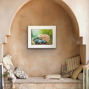 8x10" Colombia Cafe Quindio Art Print (w/mat): Jeep carrying coffee beans - HOME
