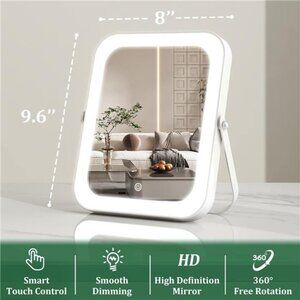 🧿【Sturdy Stand and 360°Rotation】 Our light up mirror for desk features a robust U-shaped stand that provides stability and support. It ensures the mirror stays securely in place while you're using it. Additionally, the 360-degree rotation capability allows you to position the mirror at any angle you desire, making it convenient to use from various positions.