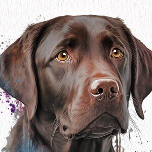Loving Eyes Staring at you. Chocolate Labrador Retriever Dog Portrait Mans Best Friend Watercolor Oil Painting Art Print