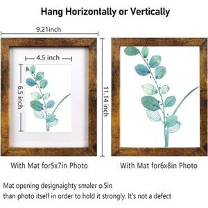 🧿Frame Style and Features: These rustic-style frames come in a pack of 6, with wall-hanging and tabletop mounting options. They include mats and hanging hardware.