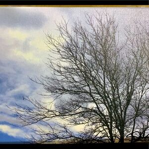 The shadow of a leafless tree stands out against the sky in this original picture on canvas - signed