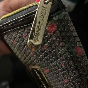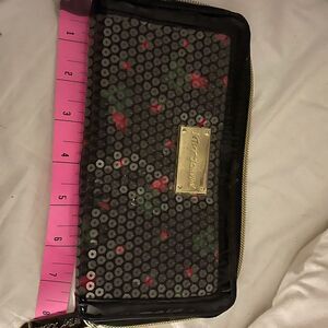 8x4 betsey johnson zip around long wallet/ guc rosebud/roses print silver bling
