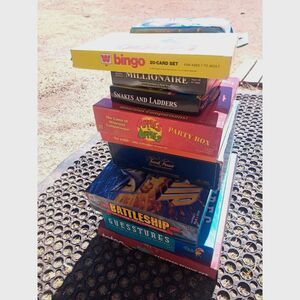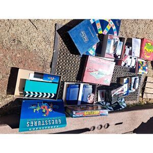 Price firm due to seller shipping - Gently used with all parts and pieces - some never used. Perfect indoor fun! Fun for rainy days-camping-and family night! Get all the most fun 90's games! Guesstures- Battleship Naval Combat - Snakes & Ladders- BINGO- Movie and TV trivia Millionaire - Apples to Apples - Trival Pursuit - Pass the Pig and a heavy duty made well & never used Table Tennis game. TWENTY TWO POUNDS OF FUN!